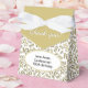 Diga "Obrigado" com este tema de aniversário do centenário branco e ouro usando os modelos fornecidos. Este fundo é um padrão de números aleatórios de ouro e branco com o marco número 100 repetido em tamanhos e ângulos variados. Há uma aba dourada no topo e uma placa oval no centro da frente para o seu texto. Use as modelos fáceis para adicionar suas próprias palavras, nome inicial ou monograma. O gráfico é uma ideia divertida de embrulhar pequenos presentes ou favoritos para festas para a sua 100ª festa de aniversário. A design também é adequada para todas as ocasiões centenárias em que você comemora a centena número 1.