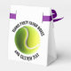 Caixas de favores em estilo de barraca com imagem / foto / foto de bola de tênis 10x com texto personalizado personalizado, 3" x 1,5" x 3,25" de altura. A caixa de favores barraca vem com a opção de fita branca, preta, roxa ou rosa. Os suprimentos perfeitos para uma festa temática de tênis ou aniversário de jogador de tênis. Personalize o texto superior e inferior na frente e no verso da caixa de favores clicando em 'Personalizar este modelo'. Crie seus próprios favores de aniversário ou festa para um fã de tênis ou esportes e crie seus próprios enchimentos de meia de Natal ou um presente personalizável para você.