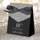 Este fabuloso e moderno 18º Aniversário do Negra Silver Glitter Obrigado a uma caixa com brilho prateado cintilante, o nome da aniversariante numa letra de texto de tendência, e amarrada com um elegante arco preto seria perfeito para o seu evento. Seria excelente para uma estação de doces, em uma obrigado que você mesa de presentes, ou em cada lugar com um favor. Certifique-se de pedir o suficiente para todos os seus convidados.
