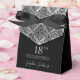 This elegant 18th Birthday Silver Damask Thank You favor box with shimmering silver faux foil, the birthday girl's name in a trendy script font, and tied with an elegant black bow would be perfect for your event. It would be great for a candy station, on a thank you gift table, or at each place setting with a favor. Be sure you order enough for all your guests.