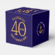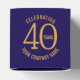 Celebrate your company’s 40th Anniversary with custom favor boxes they make a great finishing touch to your corporate gifts. Mark your company’s 40th anniversary in style with these customized dark blue and gold favor boxes. Featuring a sleek 40th anniversary design and your company logo on both sides, these personalized boxes are perfect for corporate business gifts. Fill them with small treats and give them to employees, clients, customers, and guests. Ideal for anniversary events, party tables, or office receptions, these charming favor boxes add a special touch to your celebration. Customize them with your company name, thank you message, website, or logo. Other matching items are available. Design by www.mylittleeden.com on zazzle.