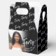 Forty silver script two photos party favor boxes. Personalize this 40th birthday party script photo favor box with your own birthday girls name and two photos of your birthday girl or boy one on each side. Other years and matching items are available and can be created by request. © Original design by Sarah Trett for www.mylittleeden.com on Zazzle.