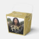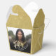 Cinquenta guião dourada e dourada parecem duas caixas de favor de festas laterais. Personalize esta caixa de promoção de fotos com o seu próprio nome de aniversariante e foto da sua aniversariante ou rapaz. Outros anos e itens correspondentes estão disponíveis e podem ser criados por solicitação. © Original design por Sarah Trett para www.mylittleeden.com no Zazzle.