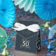 Caixinha De Lembrancinhas 50º Aniversário azul e ouro simples e elegante mod