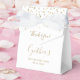 Obrigados convidados com essas caixas de favor elegantes, com confete triangular de ouro e as palavras "Obrigado!" em um roteiro dourado sobre fundo branco. Personalize-os com o nome de convidado de honra em um roteiro dourado, juntamente com a ocasião e a data em fontes douradas sans serif.