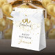 Esta caixa de favorecimento de guiões preto e dourado, 60 e fabulosas estrelas douradas confetti, pode ser personalizada com os detalhes da sua celebração de aniversário. Projetado por Thisnotme©