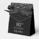 Este fabuloso e moderno 80 de Aniversário Negro Sparkly Obrigado por uma caixa de adoração com diamantes brilhantes salpicando para baixo, o nome da aniversária em uma letra de modinha, e amarrado com um elegante arco preto seria perfeito para o seu evento. Seria excelente para uma estação de doces, em uma obrigado que você mesa de presentes, ou em cada lugar com um favor. Certifique-se de pedir o suficiente para todos os seus convidados.