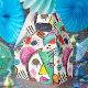 Um design artístico com rostos fêmeas abstratos com olhos e lábios. Uma bela abstrato moderna feminina encara a design com elementos do Cubismo num estilo divertido e artístico. Um design contemporâneo com formas minimalistas e cores vibrantes. Um design ideal para quem ama a arte moderna cubista, desenhos abstratos contemporâneos, retratos abstratos e ilustrações artísticas divertidas.