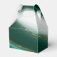 Este conjunto de design de casamento, com seu padrão abstrato de ondulações e veias fluentes de ouro reluzente, traz à mente formações rochosas atraentes e gemas cintilantes. A paleta colorida em tons joias em tons de verde esmeralda aumenta o apelo. A caixa de favoritos do casamento mostrada aqui tem tudo acima com modelo para adicionar facilmente suas iniciais e data do casamento. Procure ID903 para ver outras opções de cores e peças de coordenação para esta coleção de casamento única.