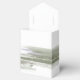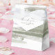 Uma pintura trava aquarela em tons cintilantes de verde-oliva com salpicos de lavanda acentua as peças desta bela suíte de casamento. A caixa de favoritos do casamento mostrada aqui também apresenta elegante caligrafia manuscrita 'Obrigado' e uma modelo para adicionar facilmente seus próprios nomes e data do casamento. Procure ID886 para ver outras peças e opções de cores para este conjunto.