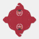 A festa de formatura de direito criativo favorece presentes com escalas engraçadas de justiça com boné de formatura preto e ouro em fundo vermelho para novo advogado.