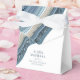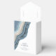 Nem todos os designs de casamento são criados iguais. Os layouts assimétricos para as peças neste impressionante conjunto de casamento provam que isso não é ruim! Bandas onduladas de cor em tons de azul empoeirado a bege arenoso com um centro de cristal brilhando formam um sotaque geode/agato na maioria das peças do conjunto. A bolsa de favores do casamento 'Obrigado' mostrada aqui mostra o acima mais uma modelo para adicionar uma mensagem pessoal, seus nomes e data do casamento. Procure ID647 para ver todas as peças de coordenação neste conjunto.