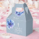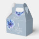 Essas caixas de lembrança modernas e elegantes para a primeira comunhão em tons de azul empoeirado com flores em aquarela podem ser personalizadas com suas informações em tipografia moderna. Projetado por Thisisnotme©