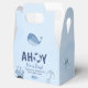 Ahoy, é um menino. Belo bicho de aquarela azul com tema "chá de fraldas a caixa" com um preservador náutico como O em Ahoy. Animais costeiros bonitos rodeiam sua mensagem personalizada, incluindo uma baleia e um peixe sob o mar. Linda praia temida caixas de favores.