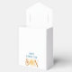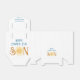 Esta bela caixa de favorecimento do chá de fraldas com tema solar apresenta uma ilustração aquática de um sorridente sol amarelo e "Aqui vem o Filho" na tipografia azul na moda. Perfeito para o chá de fraldas de um menino. Facilmente personalizável. Original Watercolor © Michele Davies.