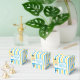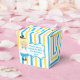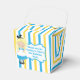 Bonito Alice no País das Maravilhas... é a caixa de favoritos para o aniversário de uma criança. A menina Alice no seu vestido azul e o Mad Hatter decoram esta bela caixa azul e amarela listrada.