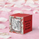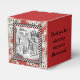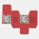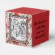 Caixa de favores ao estilo clássico quadrado com uma imagem antiga Alice no País das Maravilhas, em dois lados, de Alice no pátio da Rainha do Coração com um quadro preto e branco de pranchas de xadrez em um fundo de cartas de jogar em vermelho. O sentimento personalizável dos lados diz: "Obrigado por comemorar comigo em Wonderland!" Veja o convite correspondente, envelope, confetti, sacos de presentes, etiqueta, adesivo quadrado e papel de embalagem. Veja toda a coleção Wonderland Favor Box nos TOUCHES ESPECIAIS | Seção Favoritos para festas.