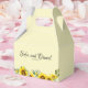 Caixas personalizadas de girassol foram favorecidas para um casamento de flor silvestre, com um esquema de cor amarela. Estas caixas encantadoras podem ser personalizadas com os nomes do casal feliz e a data do casamento, acrescentando um toque pessoal ao seu dia especial. Perfeito para segurar pequenos presentes ou guloseimas, essas caixas de favores complementarão lindamente suas decorações de casamentos de girassol e flor silvestre. A cor amarela vibrante evoca o calor e a alegria de uma celebração de casamento de verão.