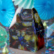Carimbo de desenho abstrato com linhas curvas em cores claras e um gradiente liso que se parece com uma camada de vidro cristalino grosso e torcido sobre designs arredondados com tons e manchas coloridas que se assemelham a amêndoas ou castanhas, e alguns tons de vermelho escuro bonito e um azul com tons claros. - Inseri mais versões, abaixo da imagem visível há outras duas, você pode usar as opções disponíveis no site e remover a imagem de cima para escolher a outra versão.