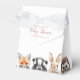 Estas caixas de lembrança para churrasco de bebê com animais da floresta em aquarela podem ser personalizadas com suas informações em tipografia rosa empoeirada moderna. Projetado por Thisisnotme©