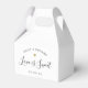 Caixas personalizadas de chá de panela favoritas com caligrafia moderna de mão "amor é doce" e design de coração de ouro.