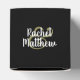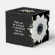 As caixas de favoritos de 2" x 2" apresentam elegantes flores brancas e nêmonas pretas de cor d'água e folhas que enrolam as laterais da caixa preta de fundo com seus nomes no topo e um obrigado pessoal que você envia no verso. Altere as fontes, as cores da fonte e até a cor de fundo. Pacote de casamento CORRESPONDENTE em nossa loja —> http://bit.ly/2WEA0w5 <—