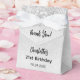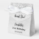 Um aniversário elegante e glamouroso, qualquer idade. Um fundo com aspecto de prata falsa com brilho falsa, brilhos. Com o texto: Obrigado! Personalize e adicione seu nome, idade e data. Letras negras. O nome é escrito com um script de estilo manuscrito de tendência.