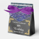 Uma elegante Caixa de Favor de Aniversário, com ouro e folha de prata. Uma impressão zebra brilhante azul escura decorada com diamantes brilhantes.