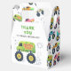 Aniversário Obrigado Crianças Modernas Monstros Carros de Carro Monstro Caixas de Favor Contém o texto "Obrigado por vir a (adicionar nome) festa" com um carro monstro colorido. Caixas fabulosas de favores e guloseimas para as celebrações de festas de aniversário infantis. Projetado pelo Evco Studio www.zazzle.com/store/evcostudio