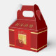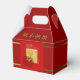 Boi Vermelho recortado em papel sobre pintura asiática com saudação em inglês na frente (letreiro dourado e sombra não personalizáveis) + Saudação chinesa. Design na caixa de favor Gable. Você pode facilmente alterar a cor do fundo clicando no botão personalizar. Disponível em outros estilos de caixas de favor (cubo, barraca, take-out). Bolsa de presente, cartão de saudação, postal e outros produtos artesanais correspondentes. Perfeito para o Ano Novo Chinês do Boi 2021.