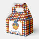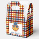 Celebrar mães para estar com este menino divertido Aqui Vem o chá temático do Sol. Essas caixas de favores do partido têm uma ilustração divertida de um desenho vestindo óculos de sol e um chapéu de balde em amarelo, laranja, vermelho e azul junto com um padrão de xadrez coordenadora.