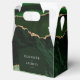 Este design moderno apresenta uma forma verde escura de arco sobre um fundo de corante verde aquoso agado com brilho dourado. Personalize-o com os nomes da noiva e do noivo e os detalhes do casamento em branco.