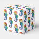 Articulação artificial, brilhante, arco-íris, cavalo de mar poligonal sobre fundo branco. Tatuagem brilhante.