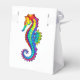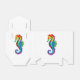 Articulação artificial, brilhante, arco-íris, cavalo de mar poligonal sobre fundo branco. Tatuagem brilhante.