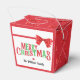 Para seus favores de Natal e sua comida de viagem, escolha essas caixas de favor, projetadas em vermelho e verde, com a mensagem Feliz Natal e um campo de texto para adicionar seu nome de família ou empresa, essas caixas são perfeitas para presentes pequenos, mordidas doces ou azedas ou favoritos para festas. Um arco vermelho puxado por uma coquete com pequenos corações decora lindamente a frente e a parte de trás das caixas.