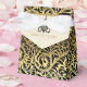 Art Deco chandelier black, caixa de favor do ouro com um candelabro preto, cor damasco floral preto e ouro e cor sólida bege/nu com banda de ouro. Este elegante design é uma abordagem moderna a um estilo vintage/retro que se assemelha ao estilo Roaring 20 e The Excelente Gatsby. Faz parte de um casamento e é completamente personalizável.