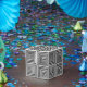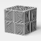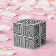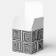 Caixa de favorecimento clássico ao estilo quadrado com uma imagem, em todos os lados e no topo, de cinzas e Arte Op ao estilo 70s preto. Veja a marca de favorito correspondente. Veja toda a coleção Disco 70s Favor Box em TOUCHES ESPECIAIS | Seção Favoritos para festas.