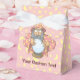 Um velho feiticeiro com capa rosa olhando para a bola mágica de cristal.
