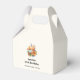 Caixa de pequenos favores com uma imagem do tema de outono. Abóboras laranja e branca cercadas por folhas do outono e flores laranja.