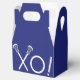 Festa de lacrosse criativa ou evento esportivo em equipe favorece caixas com design de lax em fundo azul.