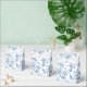 Lindas caixas de favores florais e de aves azuis e brancas.