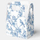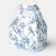 Lindas caixas de favores florais e aves azuis e brancas.