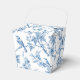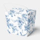 Lindas caixas de favores de flores e pássaros azuis e brancos.