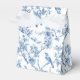Lindas caixas de favores de flores e pássaros azuis e brancos.
