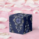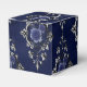 Deslumbrante caixa de favores com padrão de damasco floral vintage em tons de azul marinho e prata..