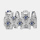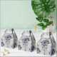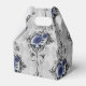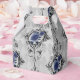 Deslumbrante caixa de favores com padrão de damasco floral vintage em tons de azul marinho e prata.