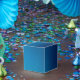 Caixinha De Lembrancinhas Azul profundo brilho submarino