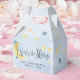 Esta bela caixa de favores apresenta uma lua aquosa e estrelas e seu texto personalizado junto com as palavras "Sobre a Lua" em um roteiro de caligrafia moderno. Use o formulário modelo para adicionar suas informações. O recurso Personalizar pode ser usado para alterar a fonte e o layout do texto.