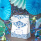 Caixa de casamento de Limão Mediterrâneo da Costa Amalfitana Itália, com azulejos azuis, limão e moldura azul.