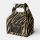 Abraça o seu lado selvagem com esta caixa de favoritos de solteiros com o tema "glam safari". Apresentando um plano de fundo de zebra preto e ouro e uma estrutura dourada para o seu texto. esta etiqueta exumenta o luxo exótico. O quadro destaca "Obrigado, estamos muito felizes que você está aqui" tipografia em letras brilhantes de ouro. Totalmente personalizável para se adequar à sua festa de safari ou final de semana de solteira, esta caixa de favoritos é ideal para uma glamourosa celebração de safari, selva ou tema de impressão animal. Procure ID1151 para ver outros produtos neste conjunto de design de bachelorette divertido.